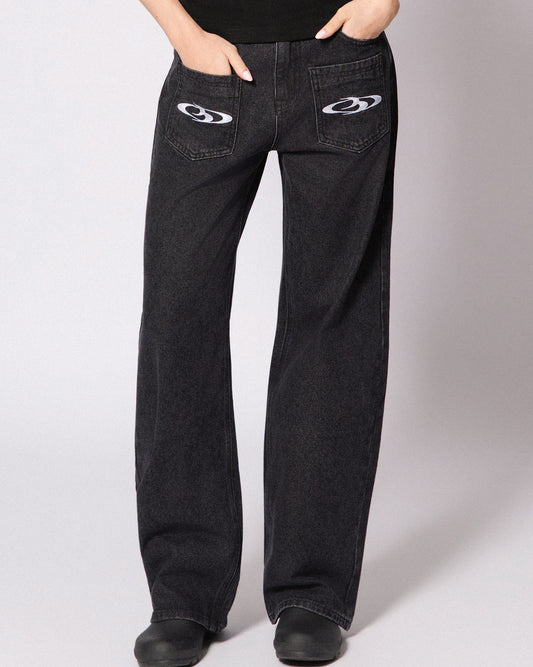 BREAKING SYSTEM FRONT PATCH LOGO DENIM PANTS