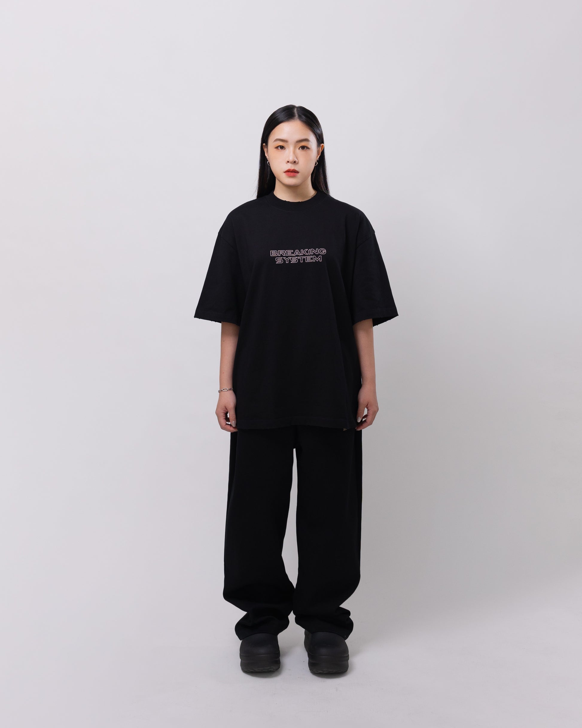 The Shadow Black Oversized Tee from Breaking System combines minimalist design with futuristic streetwear energy. Crafted from premium heavyweight cotton, this tee delivers a soft yet structured feel that maintains its shape wear after wear. The front features a clean “BREAKING SYSTEM” logo print, while the back showcases a bold, tech-inspired BS graphic that makes a statement from every angle.
