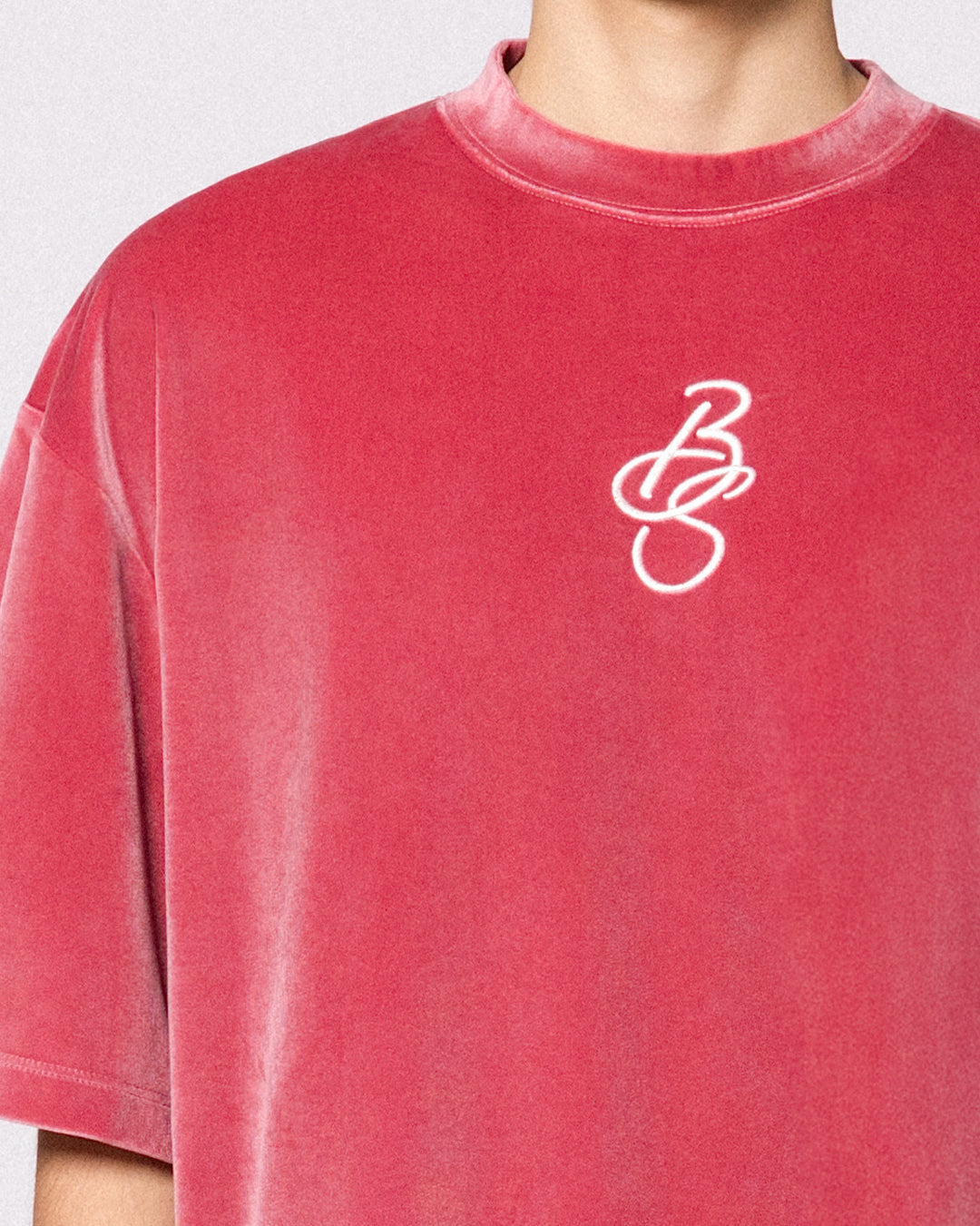 Breaking System Blush Velour Tee explores contrast through material and tone. Crafted from plush velour fabric, the tee features a washed blush-red finish with a subtle vintage fade, creating depth without excess.