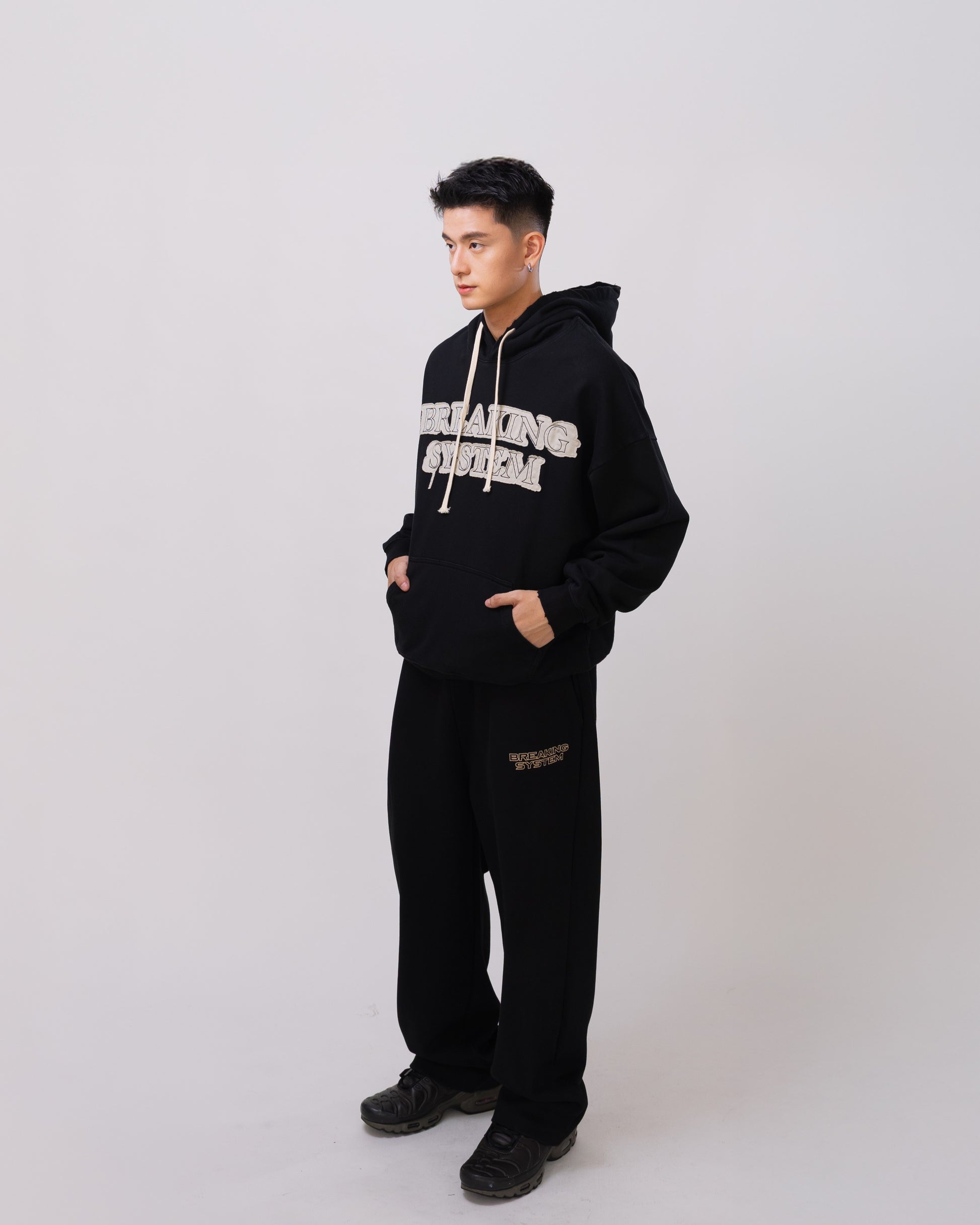 The Distressed Patch-On Hoodie combines everyday comfort with bold streetwear aesthetics. Made from soft, heavyweight cotton for a premium feel, it features a standout “BREAKING SYSTEM” applique graphic across the chest and a unique abstract logo design abstract embroidered on the back. The relaxed fit, adjustable drawstrings, and classic kangaroo pocket make it perfect for layering or casual wear.
