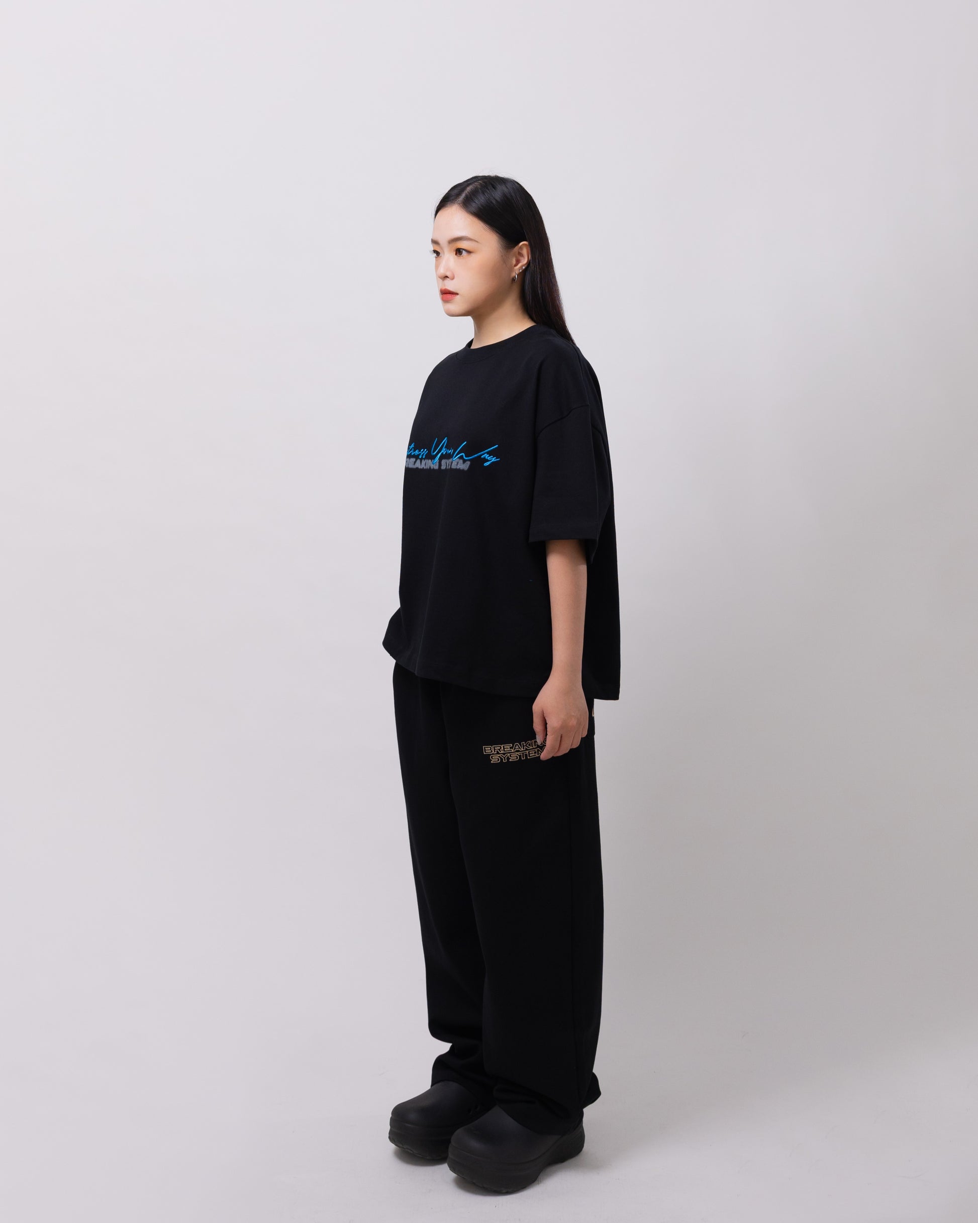 Bold minimalism with a street edge. The "DYW" Boxy Tee features an oversized boxy cut made from premium heavyweight cotton for a structured yet relaxed fit. A striking dual-tone “Breaking System” graphic across the chest adds contrast and attitude, bringing focus to its futuristic street style identity. Designed for all-day comfort and effortless layering.